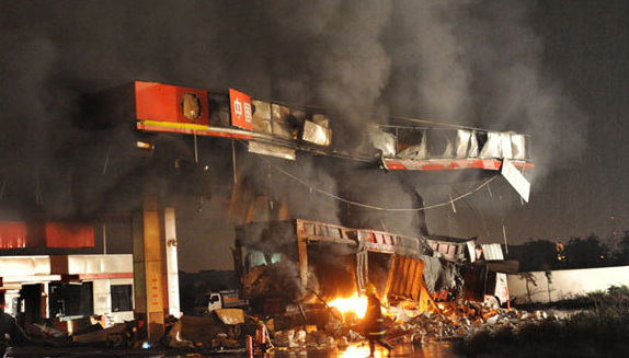 1987年11月30日 ,燕山石化公司炼油厂装油台在给河北省三河县土庄乡加油站AG贵宾厅游戏140型汽车槽车装0号柴油时 ,槽车突然发生爆炸着火 。爆炸气浪将在槽车顶部看油位的司机掀落在地上 ,脸部和手被烧伤 ,6站方米的储油罐因爆炸变形 ,并有七处破裂报废 。