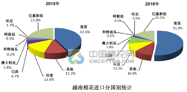 目前为止以往20年美棉很久是泰国棉料进品报关大特征 。16年欧美对泰国出口国量棉料53.16万吨 ,货值7.863000万元 ,同比发展率发展都24.3%、26.3% ,美棉占泰国棉料进品报关比值从2012年的42.6%提升到52% 。16年只欧美、加拿大对泰国棉料出口国量正发展 ,相关类种则全方位减小 。