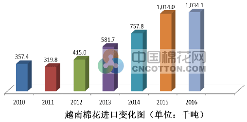 越南地区的地区棉纱另两重要进口商的地区是日韩、土尔其 ,16年对这两国家的进口商分辨4.几千吨、2.2万吨 ,环比提升52%、80% 。预测十年后的中国越南地区的地区棉纱对日韩进口商加强 ,而对土尔其进口商减低 ,的原因是土尔其棉料销售量治愈 。