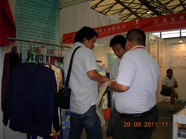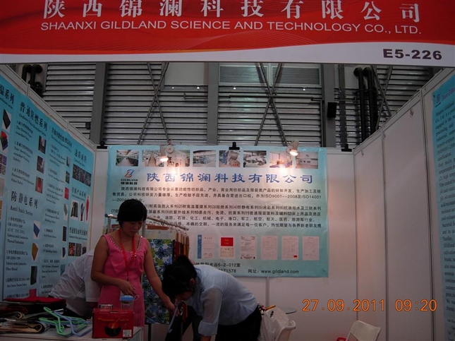 作为本届参展商 ,由公司总经理和业务部共同参加 ,展品范围:(1)耐高温防火系列、(2)耐高温覆膜系列、(3)防火系列、(4)去静电系列、(5)迷彩 系列、(6)抗油拒水及三防系列、(7)防酸系列、(8)电磁波屏蔽系列、(9)抗紫外线系列、(10)易去污、免烫、抑菌系列等新技术及产品 ,并吸引众 多参会专业人士注意 。