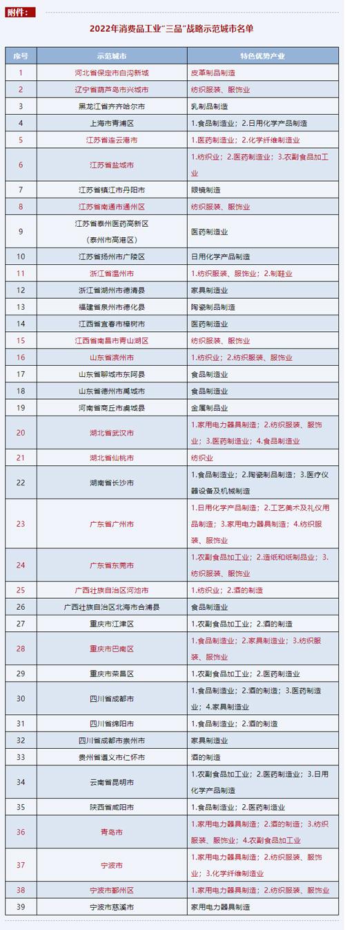 5月22日 ,工艺信息化部出炉2023年消费者品工艺“三品”的战略示范校成市全名单 ,39个成市评出 。 女记者介绍到 ,为推进推进《国内接待室厅至于推进花费品制造业“三品”专题联合行动积极营造好的卖场环镜的诺干工作建议》 ,可根据《制造业和信息查询内容化部接待室厅至于组织性报送2020年花费品制造业“三品”战术试范旅游大城市发展的消息》 ,经大城市发展报送、省部级制造业和信息查询内容化主管道相关部门审核网友推荐、专业医生评审员和互联网公示网等环节 ,工农业信息化部遴选考试出39个2020年花费品制造业“三品”战术试范旅游大城市发展 ,这其中以纺机衣服、无机化纤材料为自己的特色竞争好处高新产业发展发展的旅游大城市发展15个 ,可判断出 ,纺机衣服高新产业发展发展仍是带动力大城市发展第三产业发展、催进花费的竞争好处高新产业发展发展 。