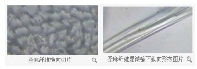 圣麻纤维截面呈梅花形和星形 ,有沟痕 ,边沿具有不规则的锯齿形 ,沿纤维纵向有很多条纹 。
