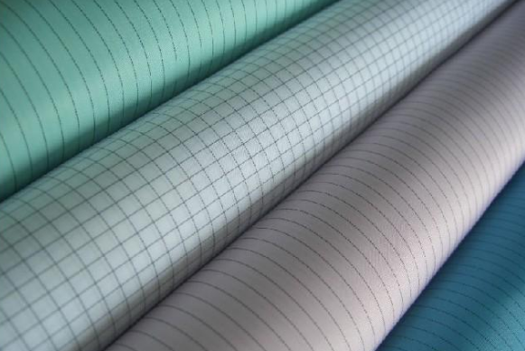 去静电织物经纬纱采纳锦涤交错 ,具有双色效果;并在纬向距离掺入导静电特种纤维 ,采纳平纹组织在喷气织机上交错而成 ,先后经过拼线、预缩、定型、上色等精良工艺整理而成 。以其色完好、手感好、有天然褶皱、垂感强、易清洗、去静电性能特强等独有长处博得时装服饰企业的厚爱 ,也被广大去静电工作装生产厂商逐渐采纳 。