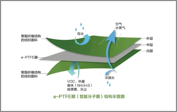 e-PTFE(膨体聚四氟氯乙烯)是沤肥膜的内在的素材 ,这类的素材业内上个量运采用御寒服、冲锋陷阵衣等科技研究方向 。考虑到近些年好氧沤肥合并膜业内的实际总量日益扩大 ,部件产家就将早先采用园服科技研究方向的膜材之间运采用好氧沤肥膜业内 ,而二者的过量空气系数区域是大不相同的 。